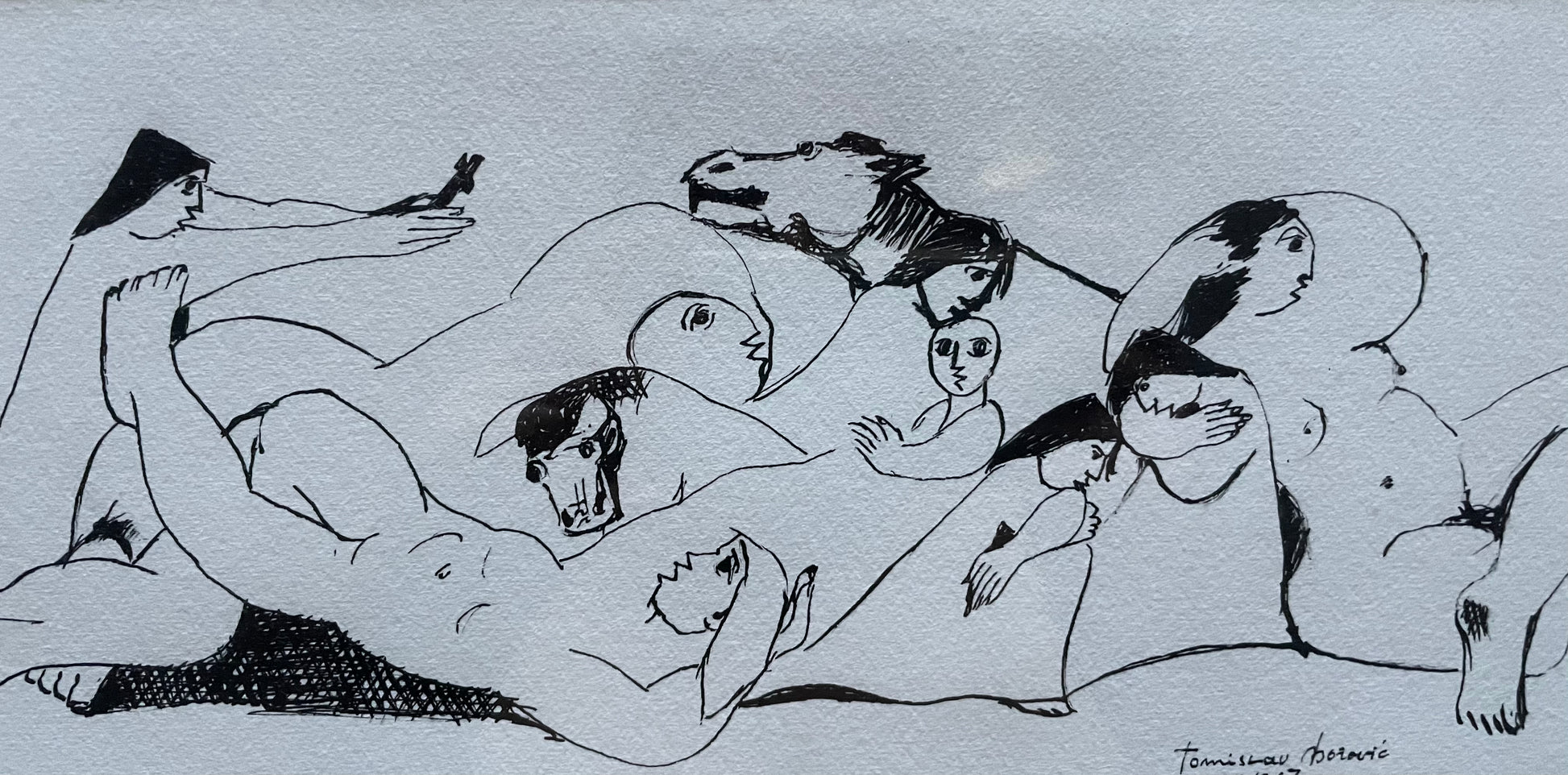 Nude Study is an ink-on-paper artwork depicting an entanglement of nude figures. This sketch has a real subtlety and complexity and we love the simplicity of the framing. One for the art lovers!