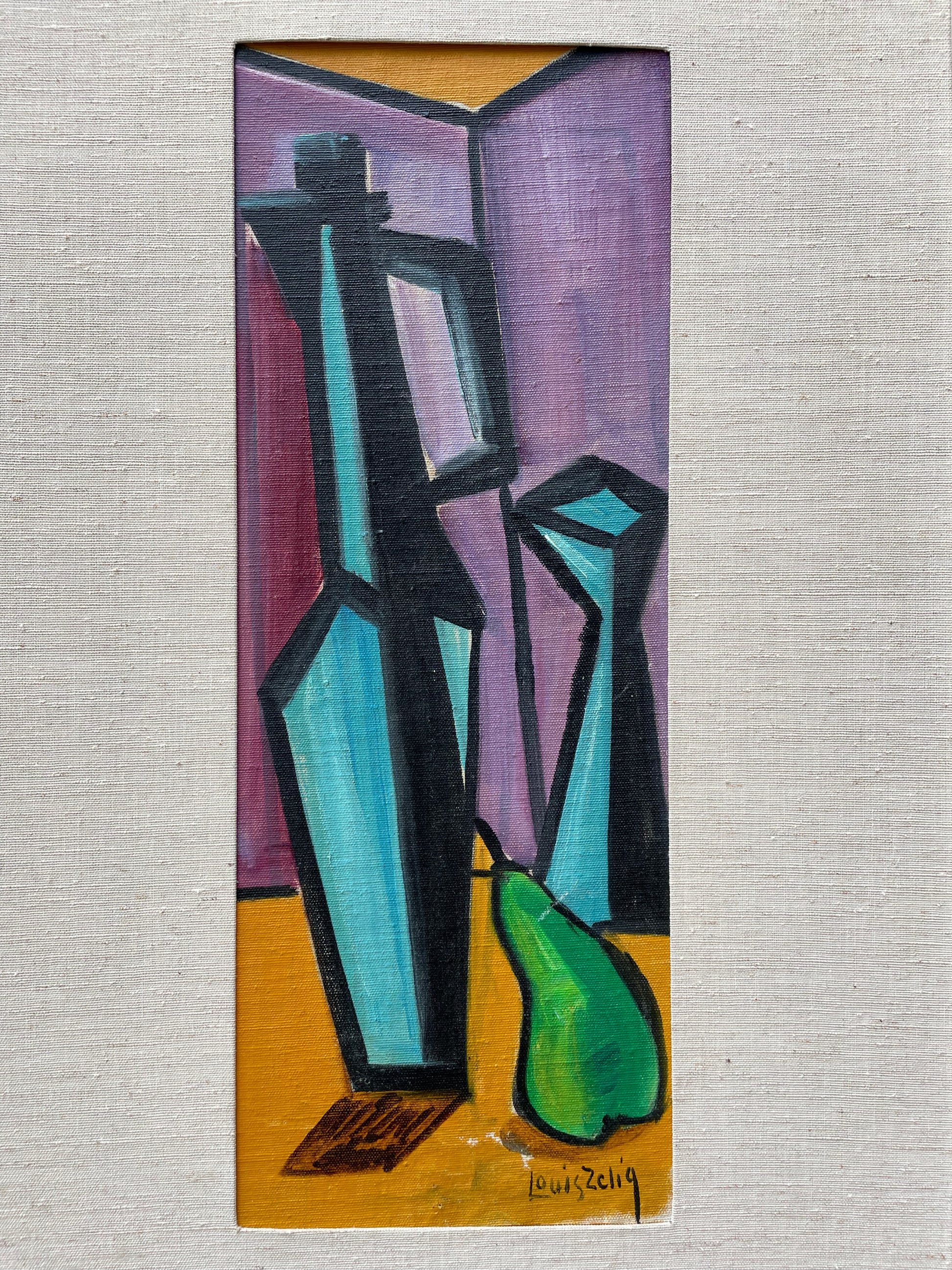This cubist still life uses bold and bright colours - we love the simplicity of the image but the fun that the colours bring! The artist, Zelig, was a Romanian/Swedish artist who exhibited extensively throughout Sweden, as well as Los Angeles, Paris and Spain. Examples of his work can be found in the Trelleborgs museum.