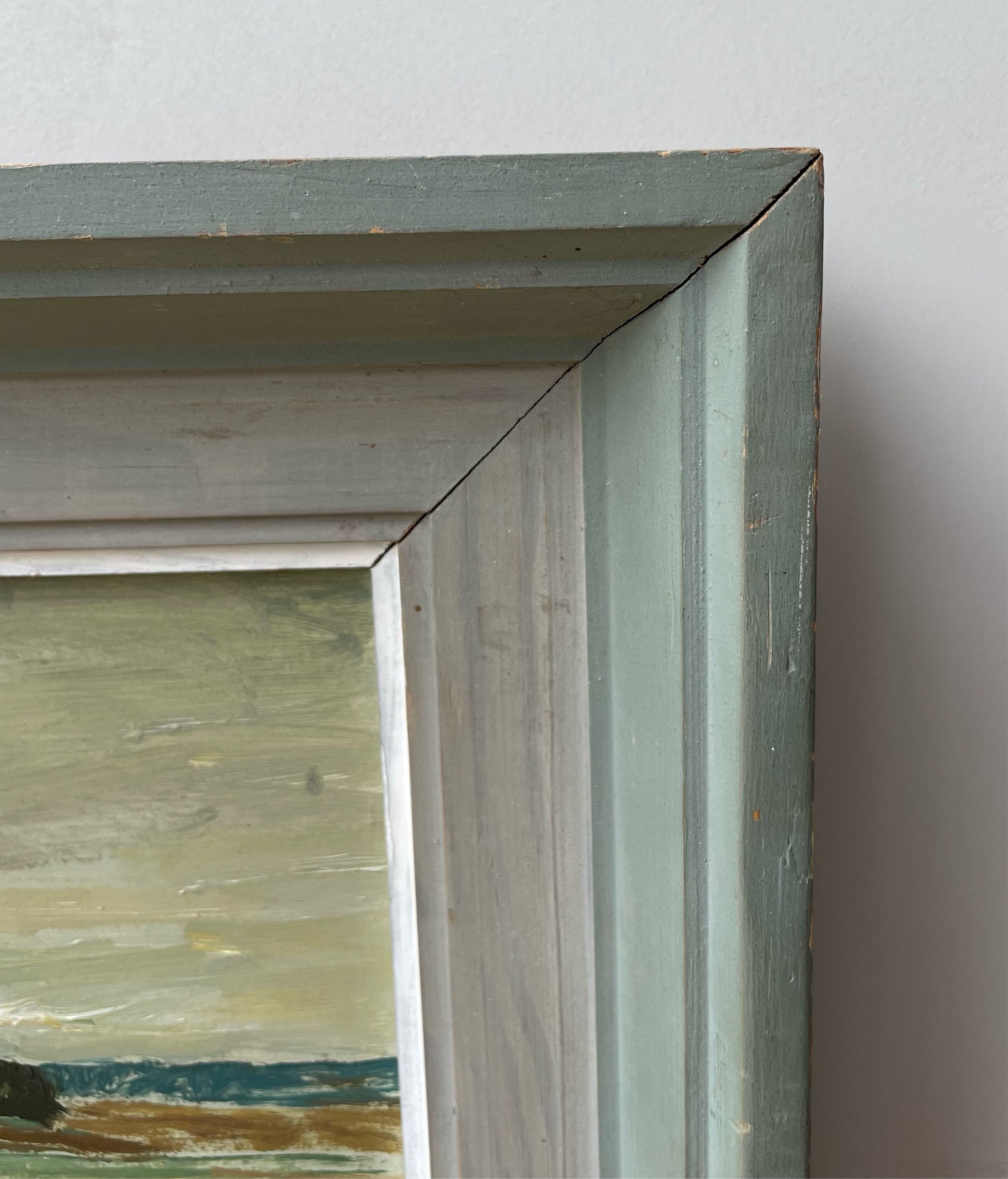 Condition: This painting is in great vintage condition. The wooden frame has a few chips and areas of paint loss, but is in overall good condition.